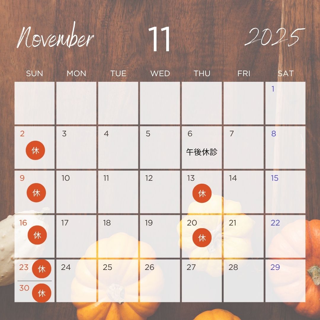 ※祝日が多いため、ご予約はお早めにお願いいたします。 - 振替診療日:6日(午後休診)、27日(終日診療)