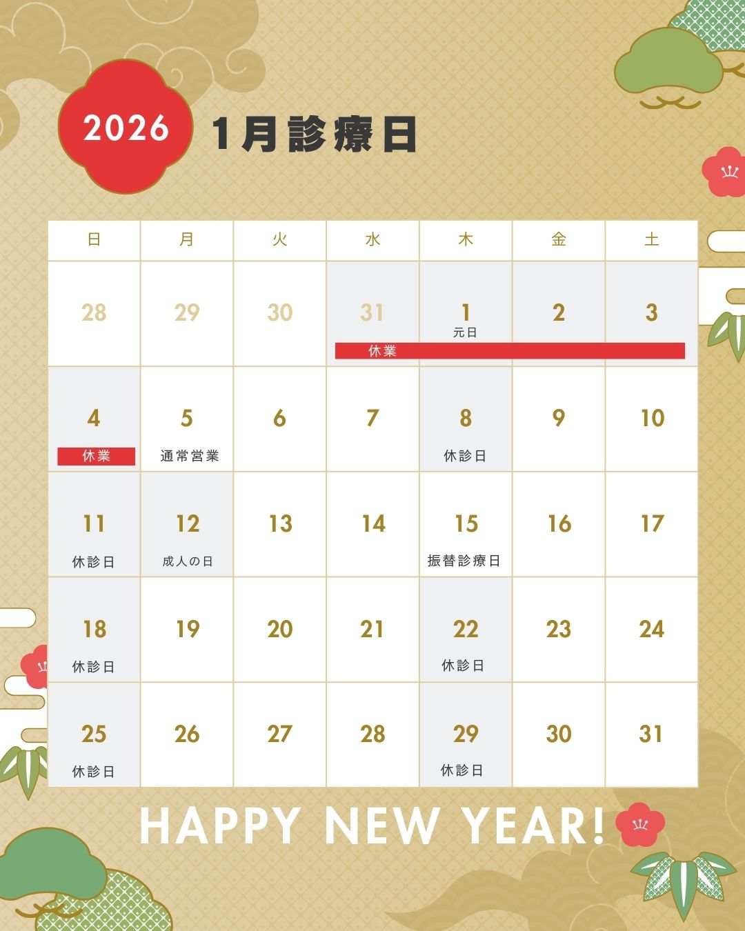休診日:木曜・日曜・祝日 :カレンダーをご参照下さい